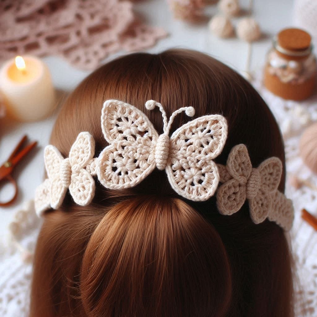 To create this gorgeous Crochet Butterfly Headband, you’ll need basic crochet skills and a love for detail. The headband is made using lace stitches, while the butterflies are crocheted separately and attached to the band for a striking 3D effect.