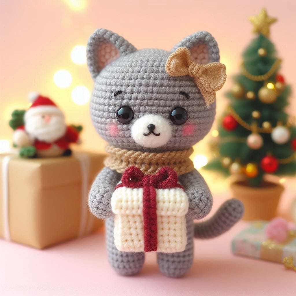How to Make a Crochet Christmas Cat with Gift