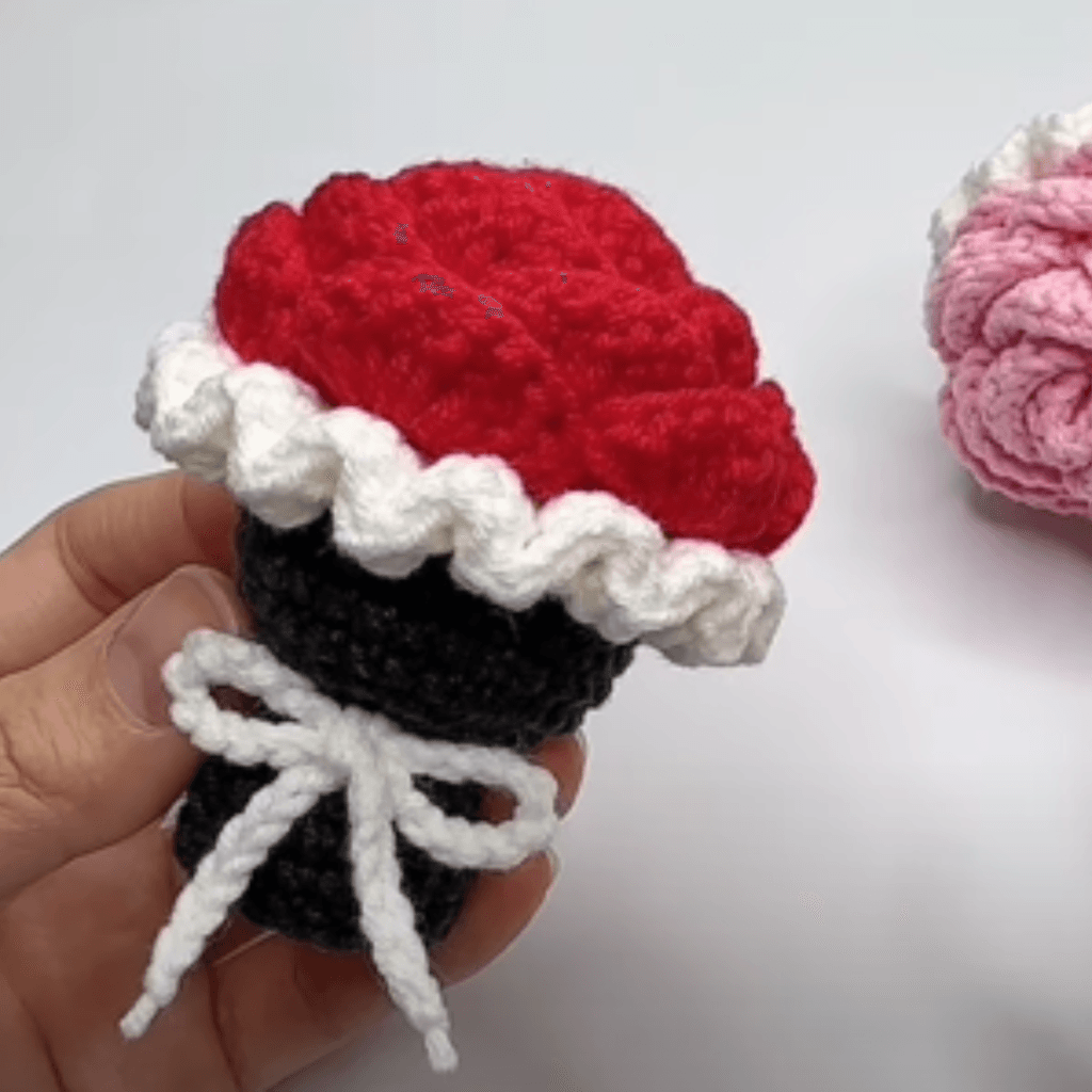 Your crochet mini rose bouquet is complete! Customize the colors and size to make each bouquet unique. Enjoy sharing or displaying your beautiful creation.