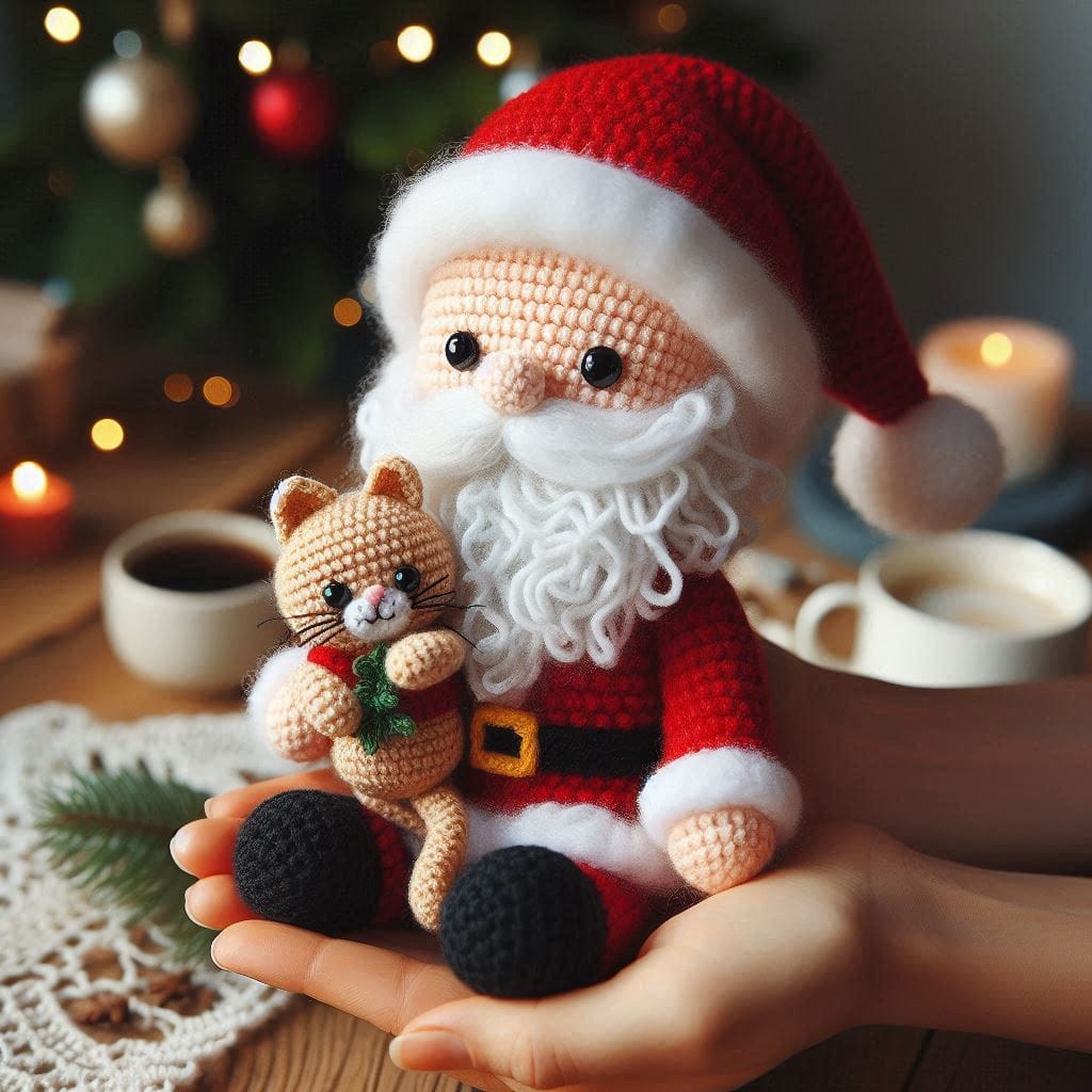 Crochet Santa with a Christmas kitten is a heartwarming creation for the holidays. It makes an unforgettable gift or a standout decoration for your home.