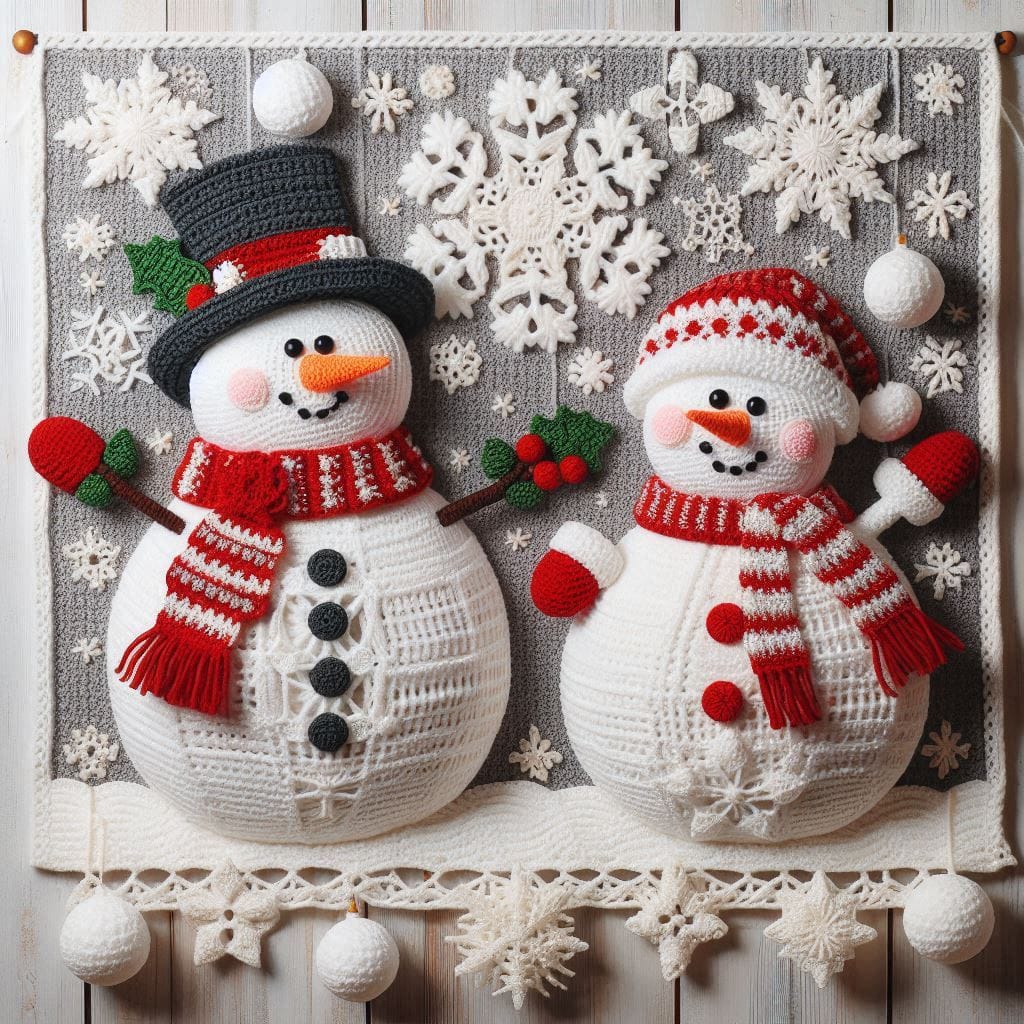 Transform your winter decor with this delightful crochet snowman wall hanging. A festive and cozy addition to your holiday setup!