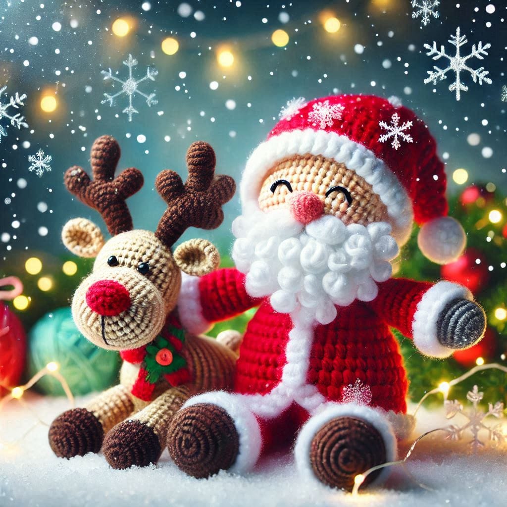 The Santa Claus and Reindeer Amigurumi duo is a charming addition to your handmade holiday decorations and makes for a delightful Christmas gift.